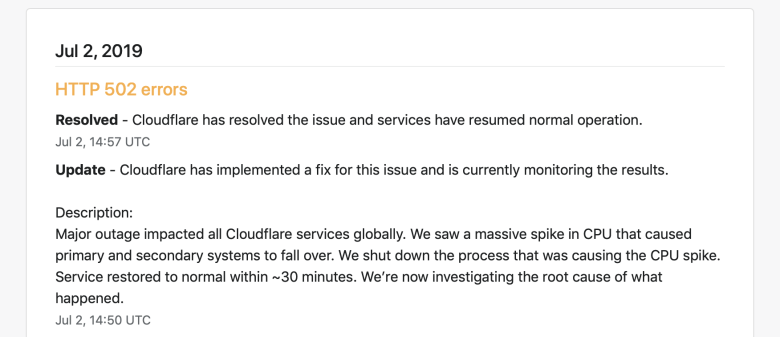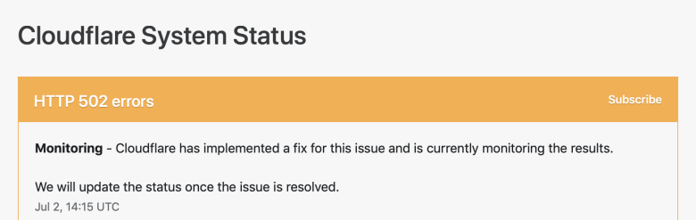 물론 구글 크롬의 ReactJS 확장프로그램을 설치하면 해당 정보들을 확인이 가능하지만 일반적으로는 이러한 정보의 확인이 불가능하기 때문에 개발 필요성을 계속 생각하고 있었습니다. 게다가 마침 어제 Cloudflare의 서비스 장애가 발생하면서 Cloudflare를 사용하고 있는 모든 사이트가 영향을 받았습니다.