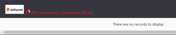 정상적으로 API로부터 데이터를 받아오지 못했을때의 UI 이렇게만 해도 사용자들에게 현재 웹사이트가 정상적으로 데이터를 실시간으로 받아오고 있는지 확인이 가능하게 시각적으로 표현이 가능하도록 합니다. 물론 데이터를 받아오지 못할 경우 테이블도 로드되지 않도록 설정하였습니다.